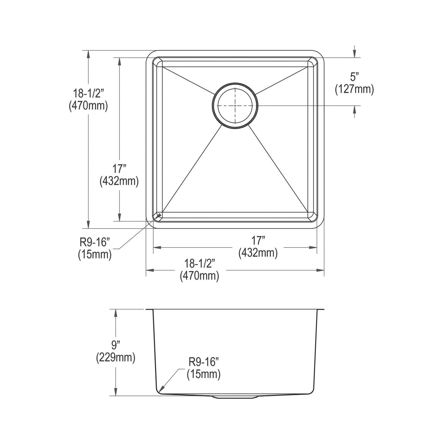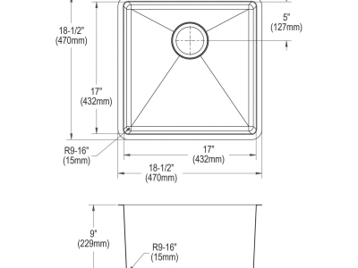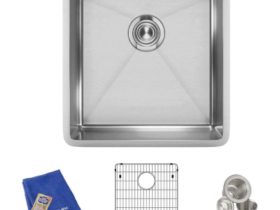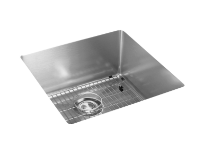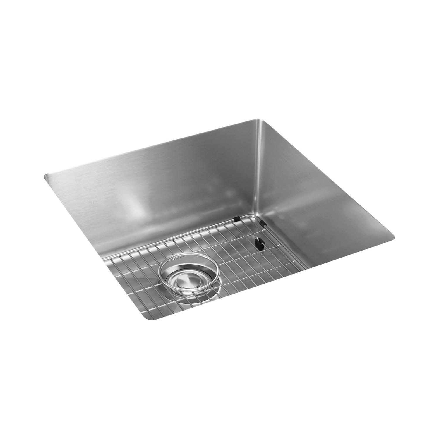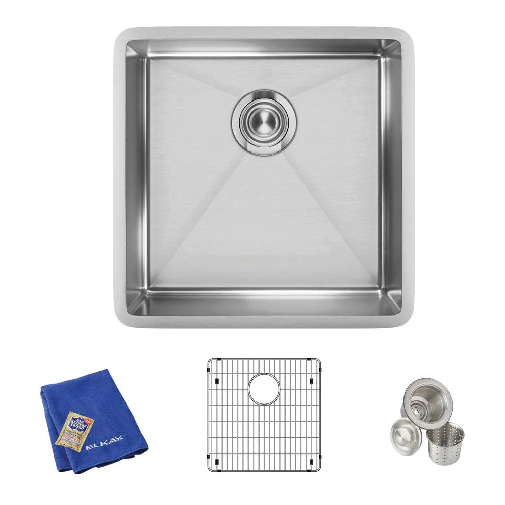 Elkay®, ECTRU17179TC, Kitchen Sink Kit, Transitional, Crosstown® Collection, Squared Shape, 17 in Bowl Length, 17 in Bowl Width, 9 in Bowl Depth, 3-1/2 in Drain Opening, 1 Bowls, 18-1/2 in L x 18-1/2 in W x 9 in H Overall, Undermount Mounting, 18 ga 304 Stainless Steel, Polished Satin, Import