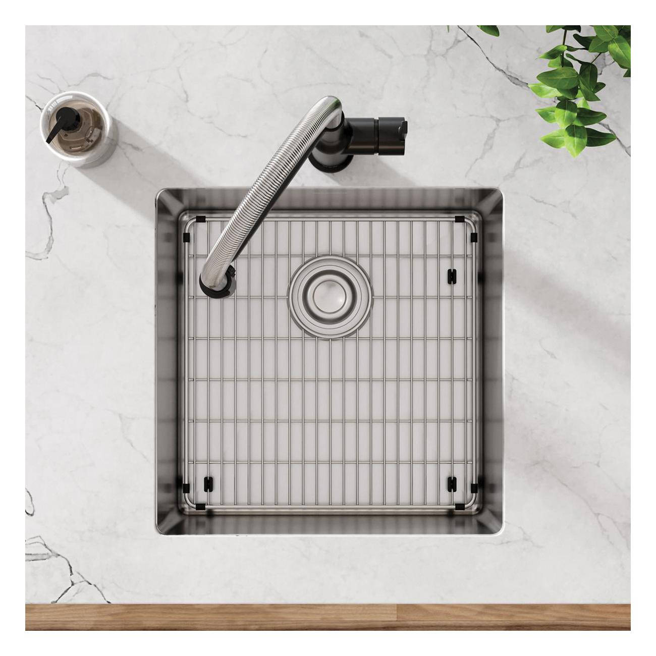 Elkay® ECTRU17179TC Crosstown® Transitional Kitchen Sink Kit, Polished Satin, Squared Shape, 17 in L x 17 in W Bowl x 9 in D Bowl, 18-1/2 in L x 18-1/2 in W x 9 in H, Undermount Mounting, 18 ga 304 Stainless Steel