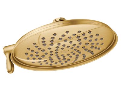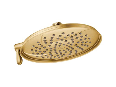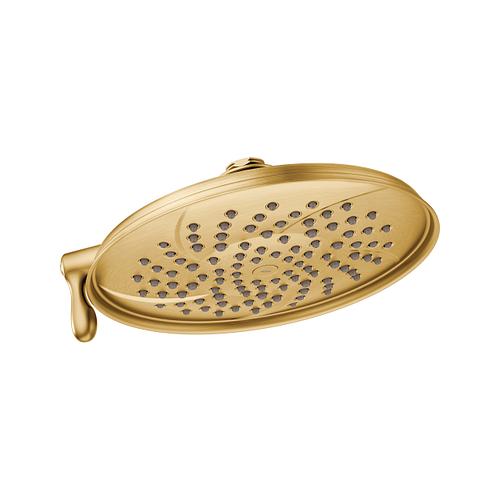 Moen®, S1311BG, Shower Head, Multifunction, Series: S1311, Isabel™ Collection, 2.5 gpm Flow Rate, 1/2 in IPS Connection, 2 Sprays, Spray Pattern: Full/Concentrated Rinse, 80 psi Pressure, 8-1/2 in Dia Head, 8 in Overall Width, 8 in Overall Height, Brass, Brushed Gold, Domestic