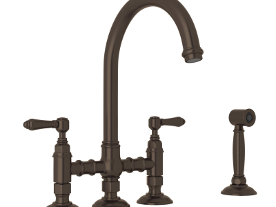 Rohl®, A1461LMWSTCB-2, Kitchen Faucet, Traditional, San Julio Collection, 1.5 gpm Flow Rate, Lever Handle, 4 Faucet Holes, Spray Pattern: Single-Function, Deck Mounting, Ceramic Disc Cartridge, Tuscan Brass