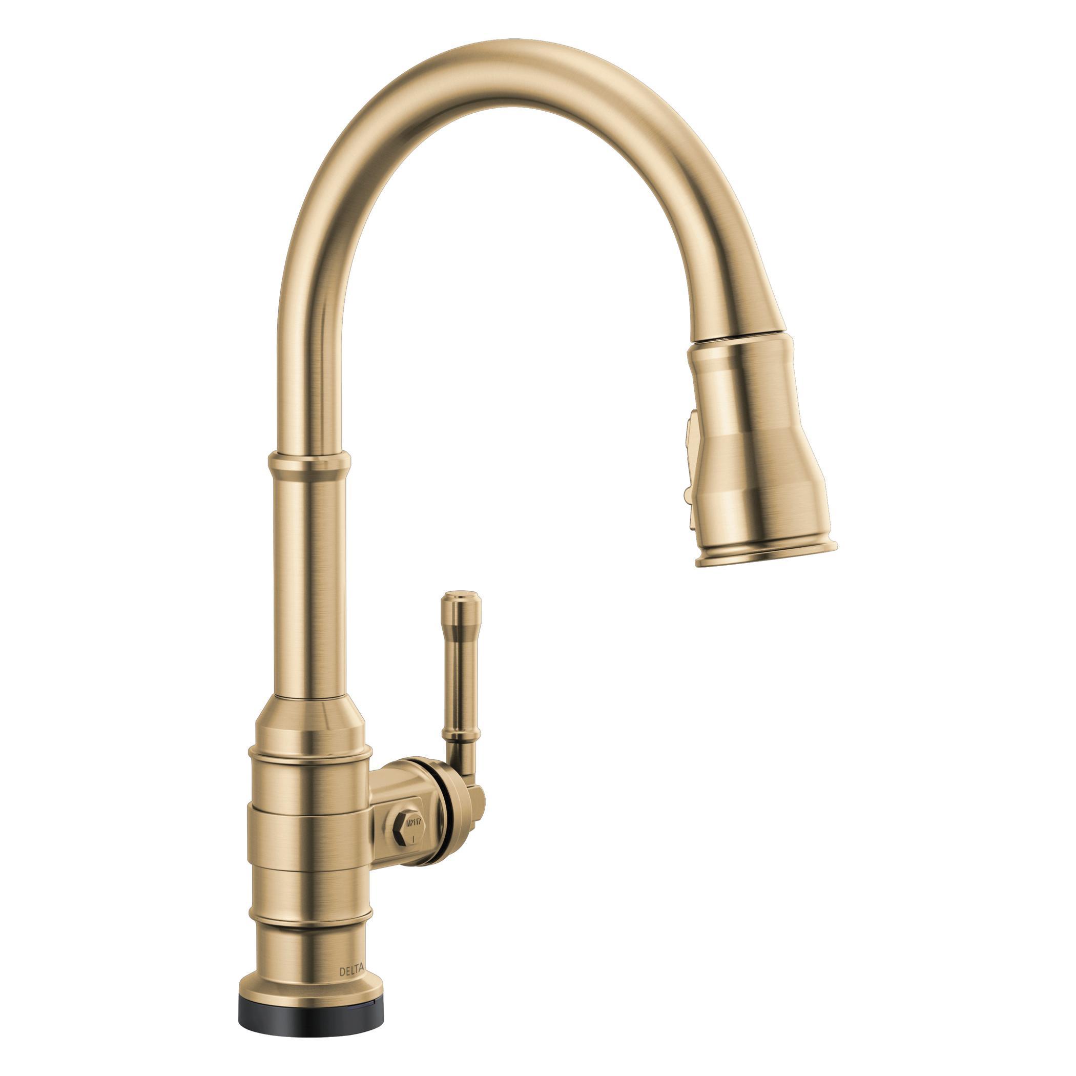 The powerful features of the Broderick® Collection take center stage in the kitchen, with an industrial style that alludes to a rich heritage. The collection includes distinctive bridge faucet and pull-down spring spout faucet options that add a unique element to any kitchen. Styled after the rugged nuts and bolts of machinery, it serves as a true centerpiece in the kitchen. Touch it on. Touch it off. Whether you have two full hands or 10 messy fingers, Delta® Touch2O® Technology helps keep your kitchen faucet clean, even when your hands aren’t. A simple touch anywhere on the spout or handle with your wrist or forearm activates the flow of water at the temperature where your handle is set. The Delta TempSense™ LED light changes color to alert you to the water’s temperature and eliminates any possible surprises or discomfort. Kitchen sink faucets with Touch-Clean® Spray Holes allow you to easily wipe away calcium and lime build-up with the touch of a finger. Delta® ShieldSpray® Technology cleans with laser-like precision while containing mess and splatter. A concentrated jet powers away stubborn messes while an innovative shield of water contains splatter and clears off the mess, so you can spend less time soaking, scrubbing and shirt swapping. Delta® kitchen faucets with DIAMOND™ Seal Technology perform like new for life with a patented design which reduces leak points, is less hassle to install and lasts twice as long as the industry standard*. Kitchen sink faucets with Touch-Clean® Spray Holes allow you to easily wipe away calcium and lime build-up with the touch of a finger. You can install with confidence, knowing that Delta kitchen faucets are backed by our Lifetime Limited Warranty. Electronic parts are backed by our 5-year electronic parts warranty. *Industry standard is based on ASME A112.18.1 of 500,000 cycles.
