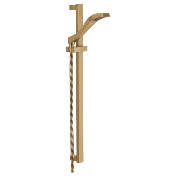DELTA® Hand Shower, Premium, Dryden™, Shower Head Patterns: 1-Function, 2 gpm, 60 to 82 in Hose Length, Full Body Spray, 80 psi, 1/2-14 Male NPSM, Stretchable Metal Hose, Brass, Brilliance® Champagne Bronze, With Slide Bar Yes/No: Yes, Import