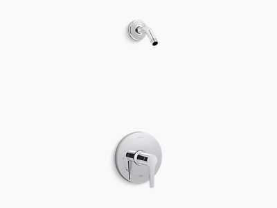 Pitch(TM) showering components feature a sleek, simple design that pairs beautifully with the full range of KOHLER(R) contemporary faucet collections. Complete this shower trim with a showerhead and a Rite-Temp(R) pressure-balancing valve, which maintains your desired water temperature during pressure fluctuations.