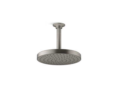 Kohler® Shower Head, Contemporary, Series: 76464-G, Awaken® Collection, 1.75 gpm Maximum, 1/2 in NPT Connection, Round Shape, 1 Spray, Spray Pattern: Drench Rain, Ceiling/Wall Mounting, 45 psi Pressure, 7-7/8 in Dia x 2 in H Head, Metal, Vibrant® Brushed Nickel