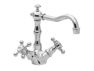Newport Brass® Prep Sink/Bar Faucet, Series: Model 938, Chesterfield, 1.5 gpm, Rotating Spout, 6-15/16 in Spout Reach, 5-1/4 in Spout Height, Traditional Cross, 2 Handles, 1 Faucet Holes, 1 in Faucet Hole, 1/2 in, NPT, 1-1/8 in Maximum Deck Thickness, Deck Mount, 1/4 Turn Washerless Ceramic Disc Valve/Cartridge, 7-1/2 in H, Solid Brass, Polished Chrome
