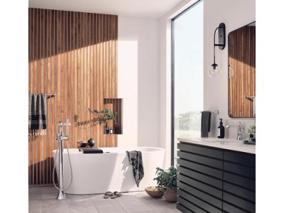 The Flara bathroom suite beautifully blends timeless classics with contemporary flair. The faucet's bold details, clean lines and expressive, gestural flared surfaces combine with slim proportions and a tall, elegant stature for a striking appearance. The Flara bathroom suite includes single-handle and two-handle faucet options, matching tub/shower fixtures, a tub-filler faucet, and a broad selection of matching accessories that provides a cohesive look throughout the bath.