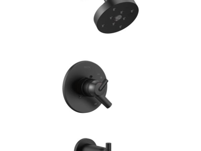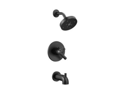 DELTA® Tub and Shower Trim, Series: Monitor® 17, Trinsic® Collection, 1.75 gpm Shower Flow Rate, Pull-Up Diverter Spout, 5-1/4 in Spout Reach, 1 Handles, Lever Handle, 6-1/2 in Dia Trim, 1222 Pressure Balanced, Hand Shower: No, Spray Pattern: H2Okinetic®, 1 Spray Functions, Wall Mounting, For Use With: For use with MultiChoice® Universal Rough-In Valve Body(R10000 Series), Brass, Matte Black