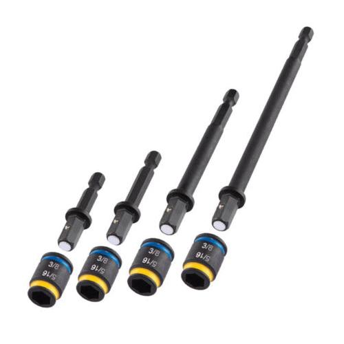 Quickly change between 5/16 in and 3/8 in hex sizes with Malco®'s unique, exclusive, dual-sided magnetic hex drivers. The reversible hex socket fits over a 5/16 in magnet-tipped, ball locking hex shaft and can be quickly reversed to change sizes. Eliminate troublesome buildup of metal shavings in the hex tip with the "easy clean magnet". Just swipe with a glove or shop towel to clear any metal shavings. Tested torque of the reversible hex chuck driver design is equal to one piece drivers. The 5/16 in side is made with a slimmer profile to easily reach tight areas. With single-piece strength and an indestructible magnet, this hex driver is the perfect companion for any trade professional.