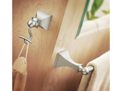 For bathroom enhancement, get the MOEN Retreat 18 in. Towel Bar in Brushed Nickel. This accessory is great for displaying a decorative towel or drying 1 that is wet.