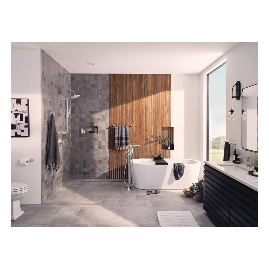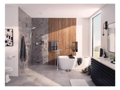 The Flara bathroom suite beautifully blends timeless classics with contemporary flair. The faucet's bold details, clean lines and expressive, gestural flared surfaces combine with slim proportions and a tall, elegant stature for a striking appearance. The Flara bathroom suite includes single-handle and two-handle faucet options, matching tub/shower fixtures, a tub-filler faucet, and a broad selection of matching accessories that provides a cohesive look throughout the bath.