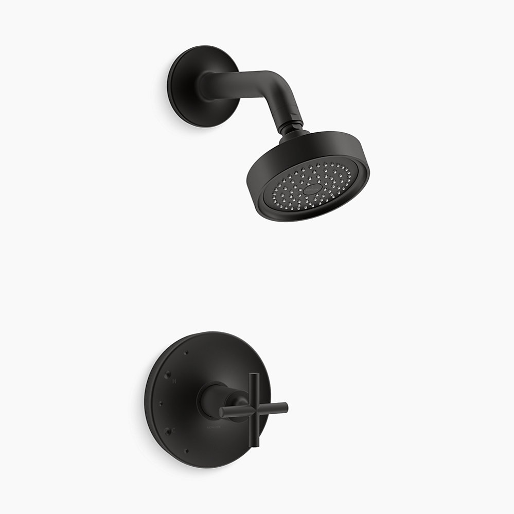 Kohler K-TS14422-3-BL Purist(R) Rite-Temp(R) Shower Trim Kit with Cross Handle, 2.5 GPM - Matte Black