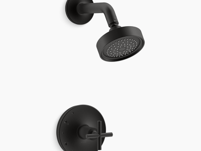 Purist(R) faucets and accessories combine simple, architectural forms with sensual design lines. Featuring this modern, minimalist style, the Purist(R) shower valve trim creates a sophisticated, unified look in your shower with a cross handle and showerhead. Pair this trim with a Rite-Temp(R) pressure-balancing valve, which maintains your desired water temperature during pressure fluctuations.