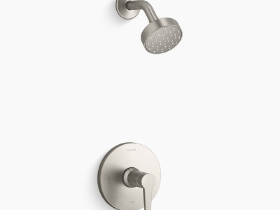 Pitch(TM) showering components feature a sleek, simple design that pairs beautifully with the full range of KOHLER(R) contemporary faucet collections. Complete this shower trim with a Rite-Temp(R) pressure-balancing valve, which maintains your desired water temperature during pressure fluctuations.