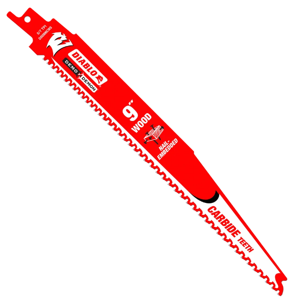 The Next Generation Diablo Demo Demon Carbide tipped reciprocating blades with new Variable Tooth Design are specifically designed for maximum performance in nail embedded wood. This high performance carbide tipped blade delivers unmatched 50 times longer cutting life than bi-metal blades in nail embedded wood.