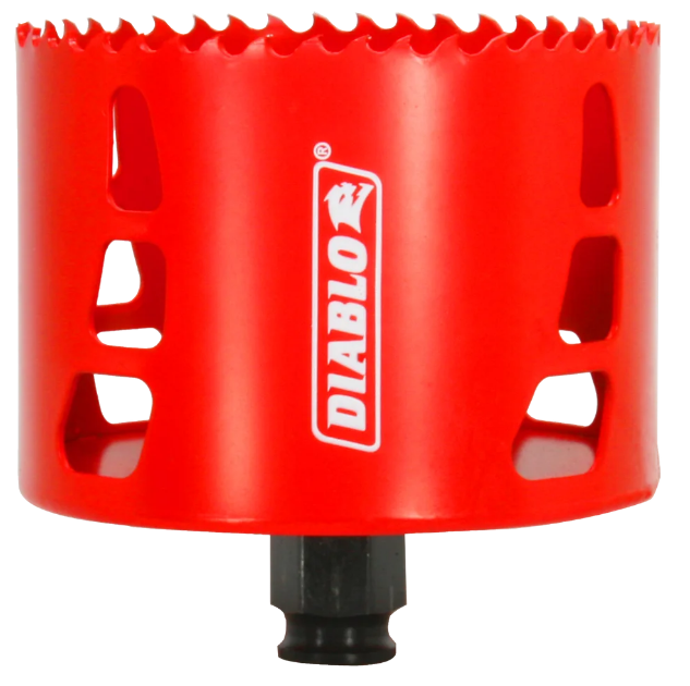 Diablo's new, high performance hole saws deliver faster cutting performance and increased productivity. Unlike anything on the market, Diablo's hole saw system and mandrel design simplify the attachment process for fast and efficient hole saw mounting. These radical new hole saws provide ultimate cutting length to bore deeper holes in a single pass, tool free plug ejection and Variable Tooth Design for faster cuts.