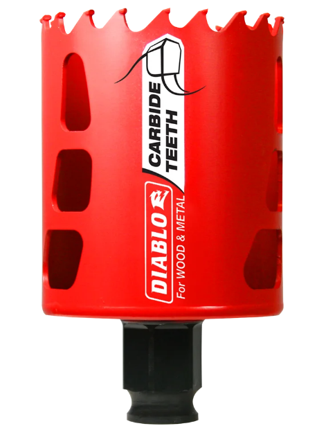 Diablo introduces the first carbide tipped hole saws on the market to cut both wood and metal (wood, nail embedded wood, plastic, aluminum, metal, cast iron, stainless steel and metal). Delivering 50 times longer cutting life than bi-metal, these new carbide tipped hole saws offer faster cutting performance and increased productivity.