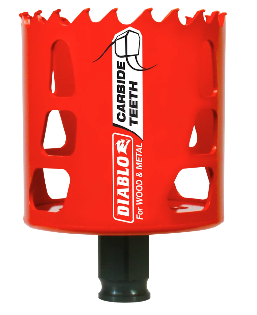 Diablo introduces the first carbide tipped hole saws on the market to cut both wood and metal (wood, nail embedded wood, plastic, aluminum, metal, cast iron, stainless steel and metal). Delivering 50 times longer cutting life than bi-metal, these new carbide tipped hole saws offer faster cutting performance and increased productivity.