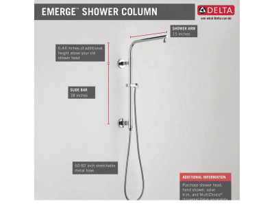 impactful design exude an upscale motif while the customizability of the hand shower and overhead shower head combo revitalizes your showering experience. The Emerge Shower Column works with any overhead shower head with no need to run plumbing through the ceiling. An integrated, 3-way diverter allows use of the overhead shower and the hand shower together or separately.