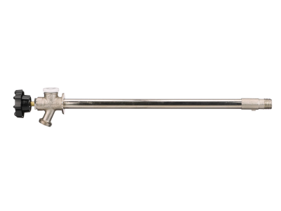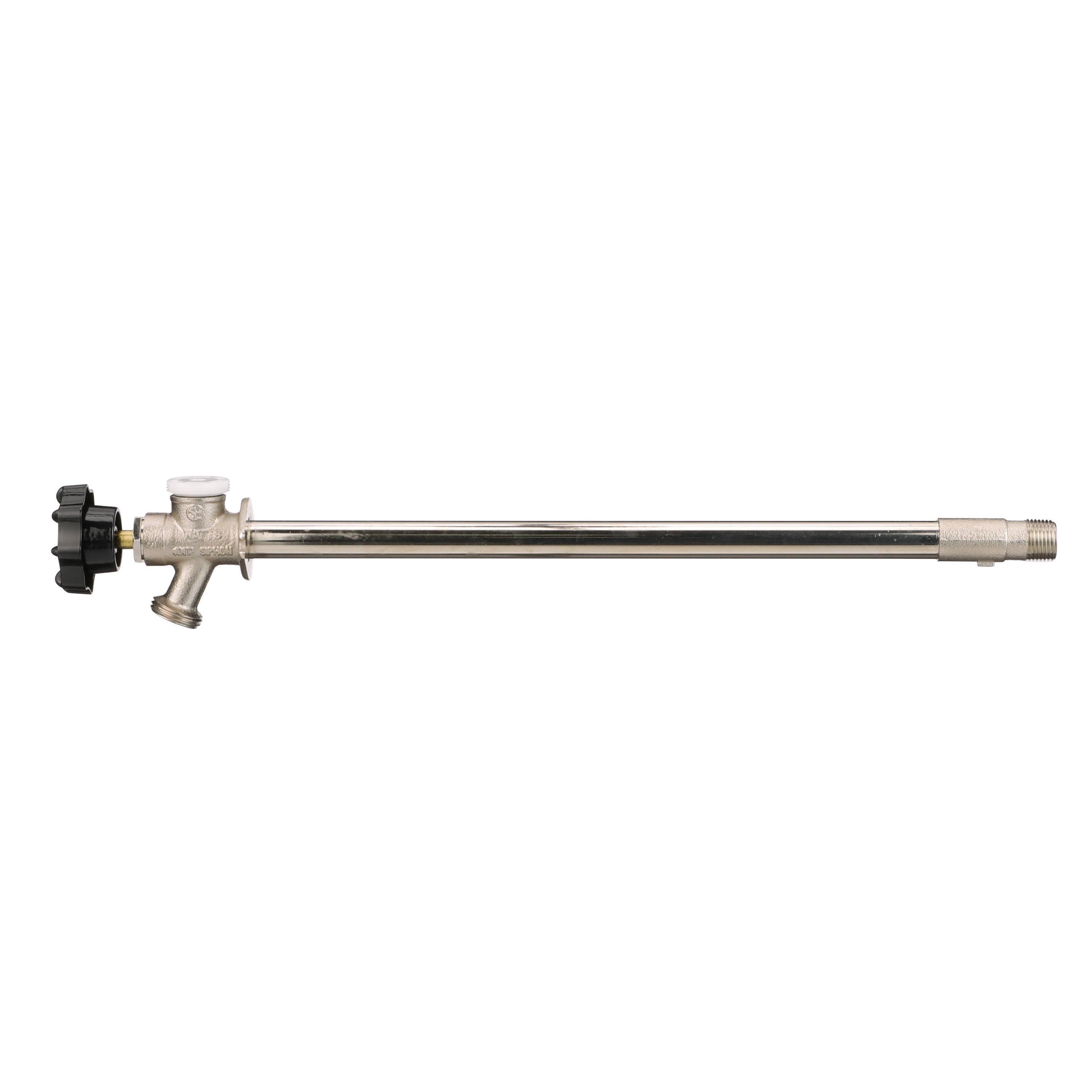 This 14 in lead free frost proof automatic draining wall hydrant is used in commercial and residential applications to provide freeze protection for the external water supply. Designed for easy field service with a replaceable bibb washer to allow for repair inline without removing sill cock from the water line. It also includes a lead free brass vacuum breaker to provide backflow protection to the potable water supply. This wall hydrant consists of a lead free brass body with nickel plated finish, 0.8 mm thick copper tube, allows for 1/2 in solder or male IPS inlet, 3/4 in hose outlet, and a steel hand wheel.