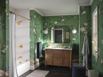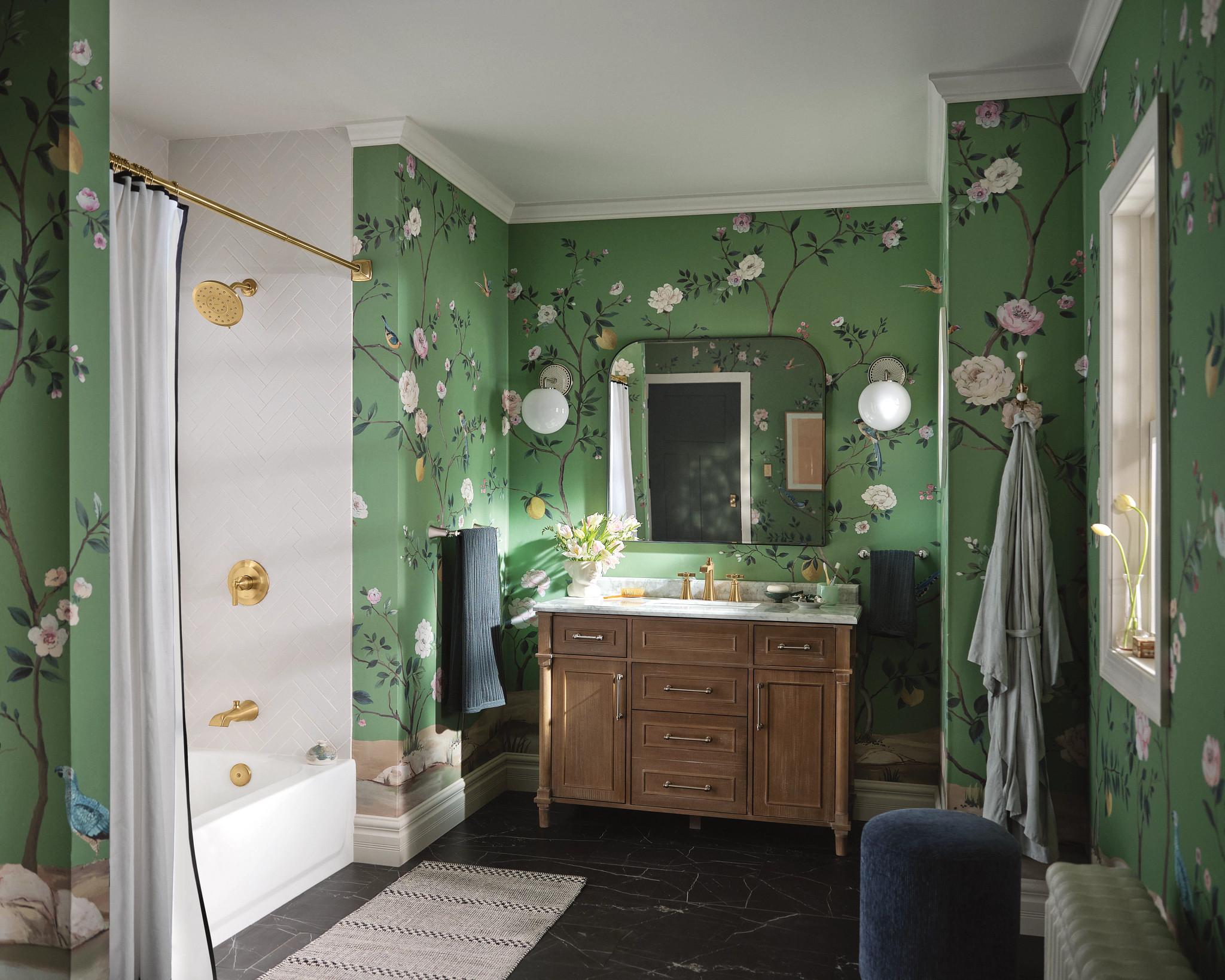 The Flara™ bathroom suite beautifully blends timeless classics with contemporary flair. The faucet's bold details, clean lines and expressive, gestural flared surfaces combine with slim proportions and a tall, elegant stature for a striking appearance. The Flara™ bathroom suite includes single-handle and two-handle faucet options, matching tub/shower fixtures, a tub-filler faucet, and a broad selection of matching accessories that provides a cohesive look throughout the bath.