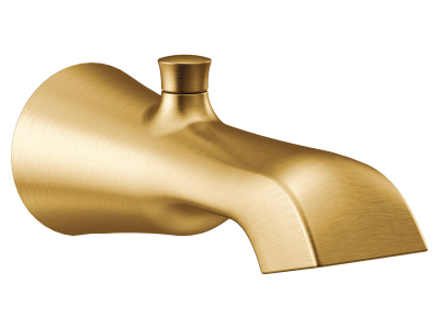 Moen® Diverter Tub Spout, Flara™ Collection, For Use With: Flara™ Single-Handle Moentrol® Trim, Specifications: 1/2 in Slip Fit/CC, Metal, Brushed Gold, 8-1/8 in L x 3-1/2 in H Dimensions, Domestic