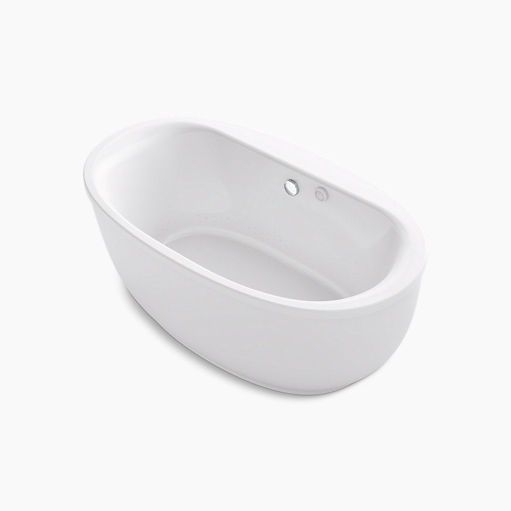 Completely surround your body in a soothing cushion of heated massaging bubbles in this Sunstruck(R) freestanding air bath. With airjets pushing humidified air through the water, this bath delivers a blissfully warm, invigorating full-body massage experience, while the heated surface warms your back, shoulders and neck. The oval, ergonomic design supports your body for a deep, relaxing soak. With its gracefully shaped lines and fluted shroud, this versatile bath complements a wide range of bathroom styles and offers easy three-step installation.