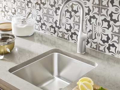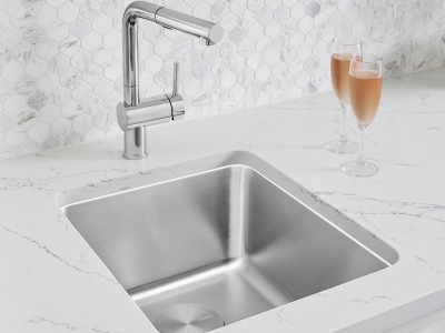 Contemporary form for everyday needs. The FORMERA 16" Undermount Stainless Steel Bar Sink is a must-have for anyone looking to maximize prep space; its compact size makes it ideal for smaller areas such as kitchen islands, bars or even butler pantries. German-engineered with corrosion-resistant stainless steel for long-lasting durability and 30 mm radius corners for low-maintenance cleaning —the FORMERA bar sink makes kitchen life easy. Combine the FORMERA prep sink with a BLANCO faucet and accessories to create a BLANCO UNIT; a seamless, fully-integrated kitchen solution designed to transform kitchen chores into joyful experiences.