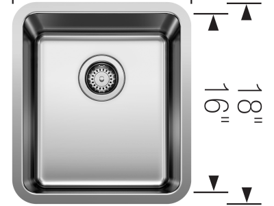 Blanco, 442767, Kitchen Sink, FORMERA Collection, Rectangular Shape, 14 in Bowl Length, 16 in Bowl Width, 9 in Bowl Depth, 3-1/2 in Drain Opening, 1 Bowls, 16 in L x 18 in W x 9.0787 in H Overall, Undermount Mounting, 304 Stainless Steel, Satin, Import