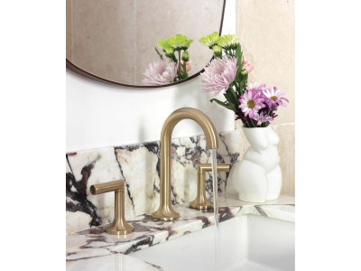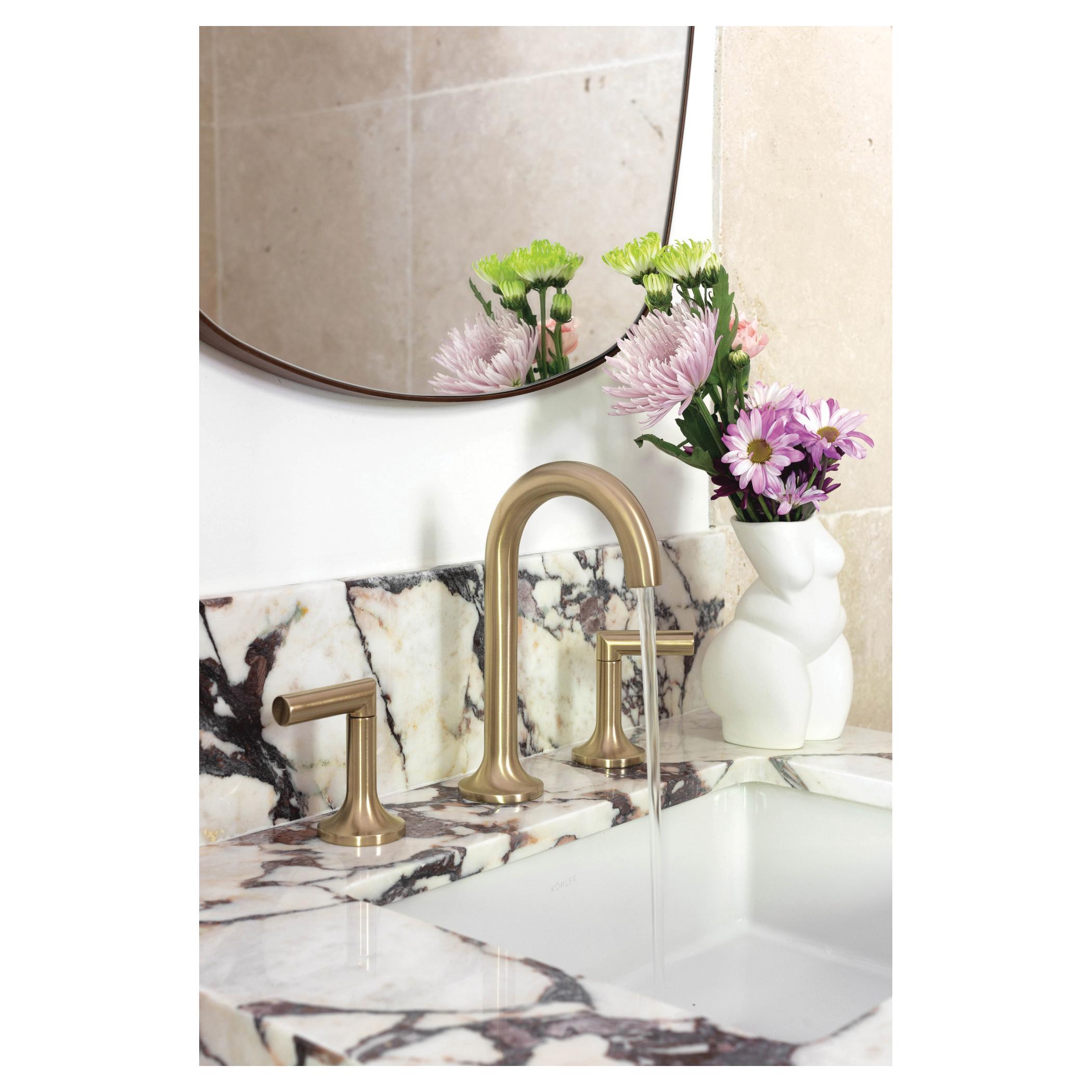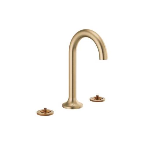 Brizo® Widespread Lavatory Faucet, Odin® Collection, 1.5 gpm Flow Rate, 6 to 16 in Center Distance, Fixed Spout, 4-13/16 in Spout Reach, 6-3/16 in Spout Height, 2 Handles, 3 Faucet Holes, 1/2-14 Connection, NPSM Connection, Spray Pattern: Laminar Flow Aerator, 3 in Maximum Deck Thickness, Deck Mounting, Ceramic Disc Cartridge, 9-1/16 in H Dimensions, Brass, Luxe Gold, Import