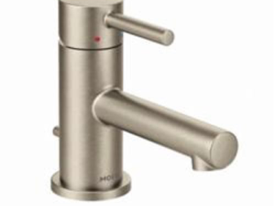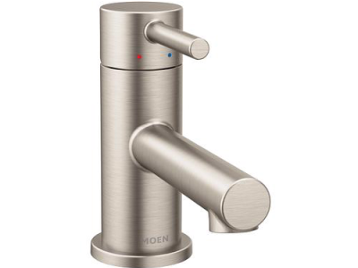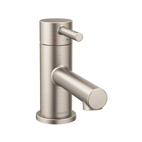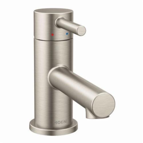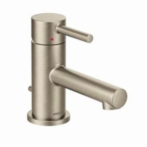 Moen®, 6191BN, Bathroom Faucet, Low Profile, Series: 6191, Align™ Collection, 1.2 gpm Flow Rate, Low-Arc Spout, 4-1/2 in Spout Reach, 1-3/4 in Spout Height, Lever Handle, 1 Handles, Pop-Up Drain, 1 Faucet Holes, 3/8 in Connection, Compression Connection, Function: Traditional, 2-1/2 in Maximum Deck Thickness, Deck Mounting, 1255 Duralast® Ceramic Disc, 2 in W x 6 in D x 4.88 in H Dimensions, Metal, Brushed Nickel, Domestic