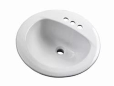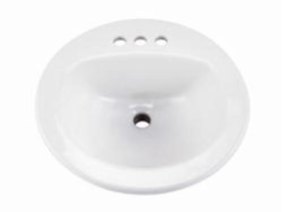 Gerber® Self-Rimming Bathroom Sink, Maxwell®, Oval, 16 in Bowl, 1-1/4 in Drain Opening, 3 Faucet Holes, 4 in Faucet Hole Spacing, 1 Basin, 19-1/4 in W, Drop-In Mount, Vitreous China, White, ADA Compliance: Yes, Import