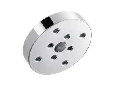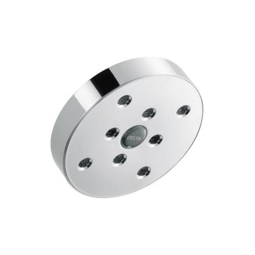 DELTA® Showerhead Only, Universal, 1.75 gpm Maximum, 1/2 in Connection, Round Shape, 1 Sprays, Spray Pattern: H2Okinetic® PowerDrench®, Wall Mounting, 80 psi Pressure, 5-13/32 in Dia x 2-39/64 in H Head, 5.41 in Overall Length, 5.41 in Overall Width, 2.61 in Overall Height, Lumicoat™ Polished Chrome, Import