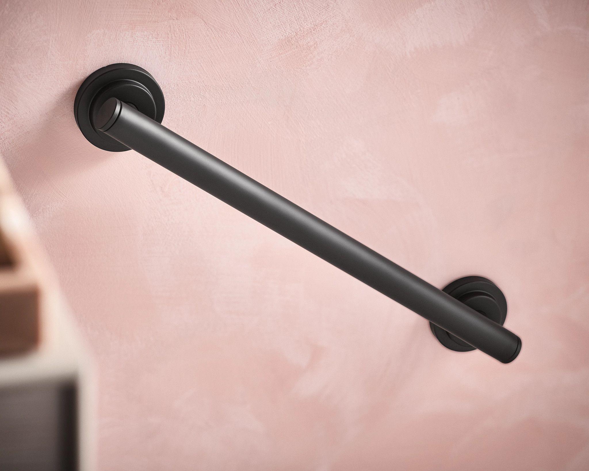 Moen® YG0718BL Iso™ Designer Grab Bar, 1-1/4 in Dia x 18 in L, Matte Black, Stainless Steel, Import