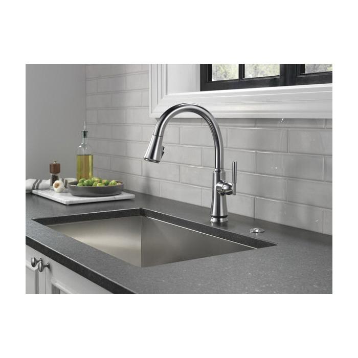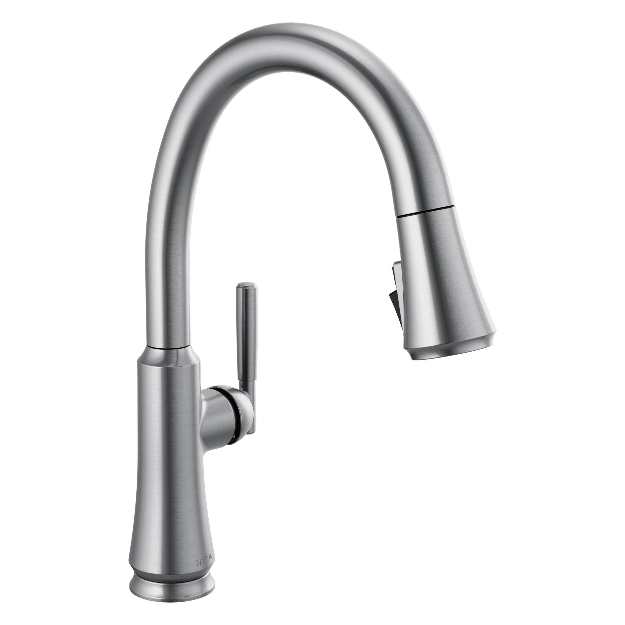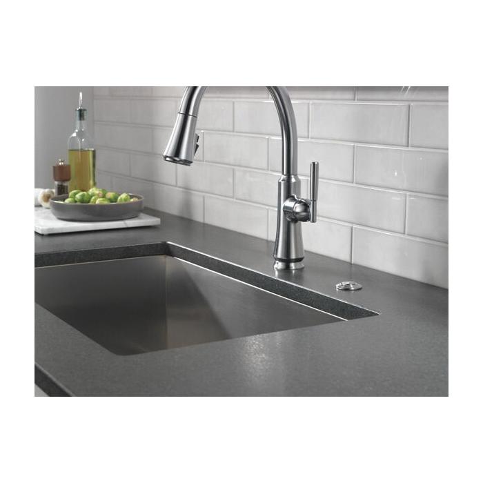 A contemporary take on traditional styling, the Coranto® Kitchen Collection brings everyday refinement to a space with subtle design details that nod to both the past and the present. Delta® MagnaTite® Docking uses a powerful integrated magnet to set your pull down sprayer precisely into place and hold it there so it stays docked when not in use. Delta® ShieldSpray® Technology cleans with laser-like precision while containing mess and splatter. A concentrated jet powers away stubborn messes while an innovative shield of water contains splatter and clears off the mess, so you can spend less time soaking, scrubbing and shirt swapping. Delta® kitchen faucets with DIAMOND™ Seal Technology perform like new for life with a patented design which reduces leak points, is less hassle to install and lasts twice as long as the industry standard*. Kitchen sink faucets with Touch-Clean® Spray Holes allow you to easily wipe away calcium and lime build-up with the touch of a finger. You can install with confidence, knowing that Delta kitchen faucets are backed by our Lifetime Limited Warranty. *Industry standard is based on ASME A112.18.1 of 500,000 cycles.