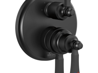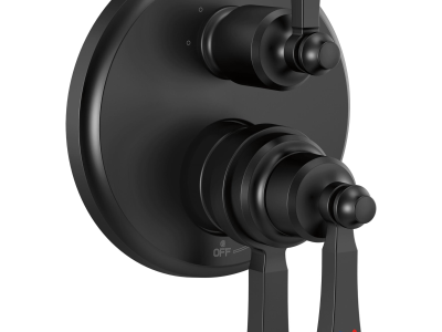 DELTA® Valve Trim, Traditional, Series: Monitor® 17, Dorval™ Collection, Valve Flow Rate 5.8 gpm, 2 Handles, Lever Handle, 5-1/4 in L x 6-3/4 in W x 8-1/2 in H Trim, 1222 Pressure Balanced, Hand Shower: No, 60 psi Pressure, Wall Mounting, For Use With: MultiChoice® R22000 Series Universal Rough Valve, Matte Black, Commercial/Residential Commercial/Residential