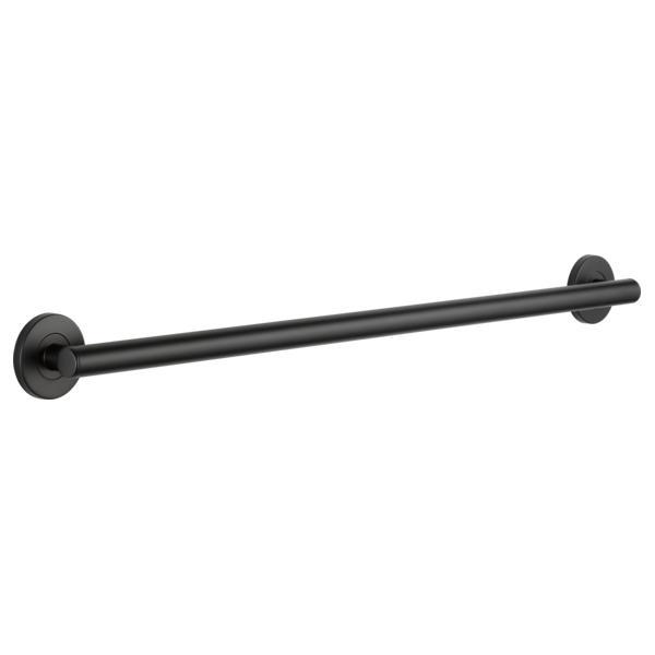 DELTA® Decorative Grab Bar, Round Contemporary, 1-1/4 in Dia, 36 in Length, 2-3/4 in Width, 3-1/2 in Height, 500 lb, Wall Mount, Stainless Steel, Matte Black, Import