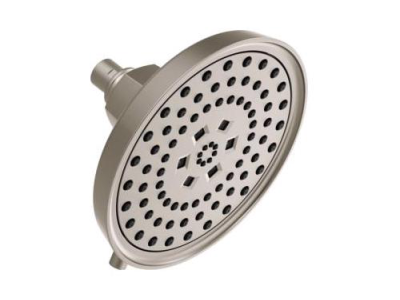 Brizo® Shower Head, Invari™ Collection, 1.75 gpm Maximum, 1/2-14 Connection, Round Shape, 4 Sprays, Spray Pattern: Full Body/H2OKinetic®/Massage Body/Pause, 80 psi Pressure, 7.63 in L x 7.63 in W x 5.13 in H Head, Luxe Nickel, Import