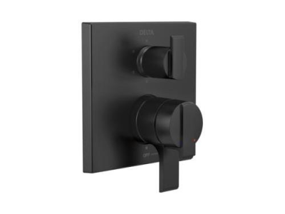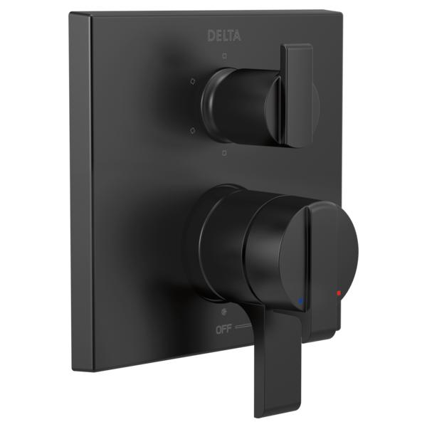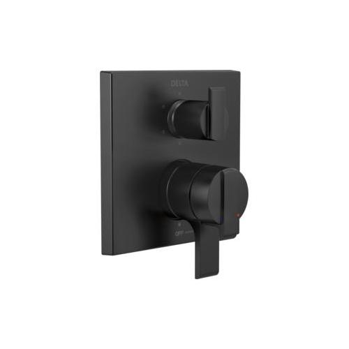 DELTA® Valve Trim, Series: Monitor® 17, Ara® Collection, 2 Handles, Lever Handle, 5.13 in L x 6.81 in W x 7.81 in H Trim, 2-Function Pressure Balanced, Hand Shower: No, Wall Mounting, For Use With: MultiChoice® Universal R22000 Series Rough-In Valve Body, Zinc, Matte Black