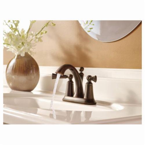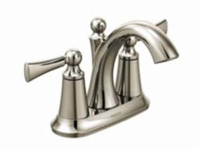 Moen® Centerset Bathroom Faucet, Wynford™ Collection, 1.5 gpm Flow Rate, 4 in Center Distance, Fixed Spout, 4-1/2 in Spout Reach, 4-1/4 in Spout Height, Lever Handle, 2 Handles, Metal Pop-Up Drain, 3 Faucet Holes, 1/2 in Connection, IPS Connection, Spray Pattern: Aerated, 3/4 in Maximum Deck Thickness, Deck Mounting, 1224 Ceramic Disc Cartridge, 10 in W x 4-1/2 in D x 5-3/4 in H Dimensions, Metal, Polished Nickel, Domestic