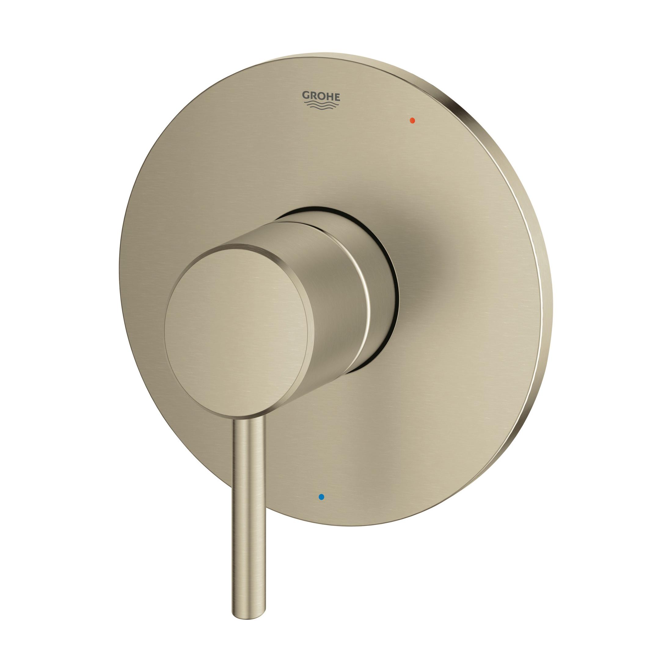 GROHE Valve Trim, Series: 14468_0, Concetto™ Collection, 5.2 gpm Bottom/3 gpm Top Shower Flow Rate, 1 Handle, Lever Handle, 6-1/4 in Dia x 3/8 in THK Trim, 1222 Pressure Balanced, 1 Spray Function, 45 psi Pressure, Wall Mounting, For Use With: GrohSafe™3.0 35110/35111/35112/35113/35114/35115 and 35116 Pressure Balance Rough-In Valves, Metal, Brushed Nickel, 6-1/4 in L x 3-7/8 in W x 6-3/4 in H Dimensions, Residential Commercial/Residential