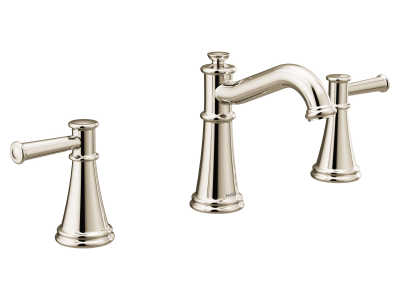 Moen® T6405NL Widespread Bathroom Faucet, Belfield™, Commercial, 1.2 gpm Flow Rate, 4-1/2 in H Spout, 8 to 16 in Center, Polished Nickel, 2 Handles, Lift Rod Drain, Domestic