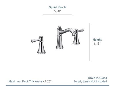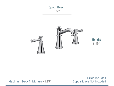 Moen® Bathroom Faucet, Widespread, Belfield™ Collection, 1.2 gpm Flow Rate, 8 to 16 in Center Distance, High Arc Spout, 5.47 in Spout Reach, 4-1/2 in Spout Height, Lever Handle, 2 Handles, Lift Rod Drain, 3 Faucet Holes, 1/2 in Connection, IPS Connection, Spray Pattern: Aerated Stream, 1-1/4 in Maximum Deck Thickness, Deck Mounting, 1234™ Duralast™ Cartridge, 6-1/4 in H Dimensions, Metal, Polished Nickel, Domestic, Commercial