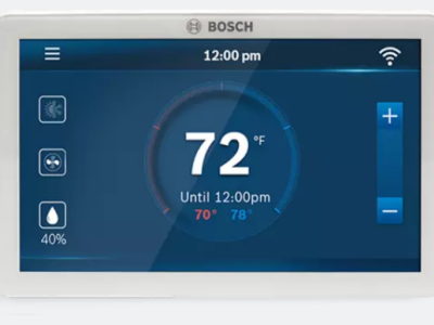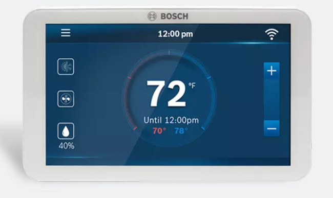 The Bosch Connected Control BCC100 thermostat is compatible with the majority of 24 volt heating and cooling equipment. Easily control your home's temperature and humidity from the full color 5 inch touchscreen display, the Bosch Connected Control app or your voice with the Bosch Connected Control Alexa Smart Home Skill and your Alexa enabled smart devices. Connect to Wi-Fi to view local weather data to determine your optimal in home temperature throughout the day.