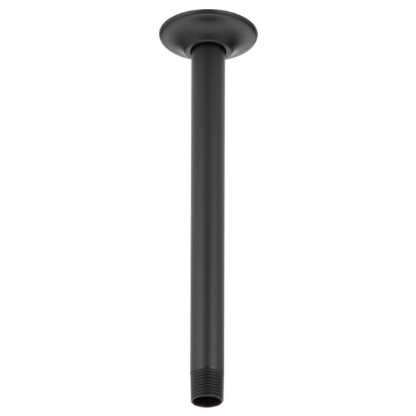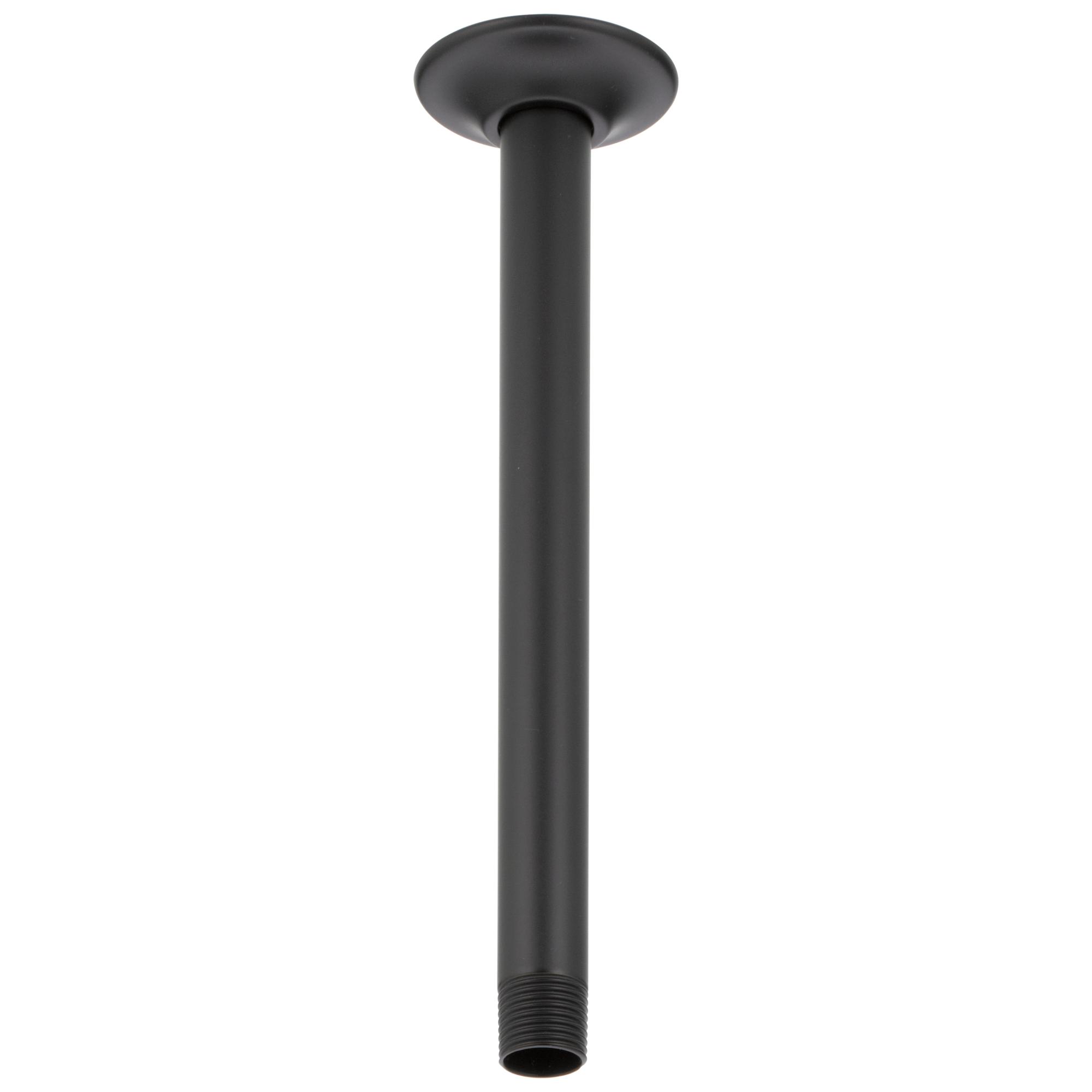 DELTA® Shower Arm and Flange, 10 in Arm Length, Stainless Steel Arm, Specifications: 1/2 in Male IPS, Ceiling Mount, Stainless Steel, Matte Black, 2.91 in L x 2.28 in W x 9 in H Dimensions, Import