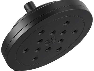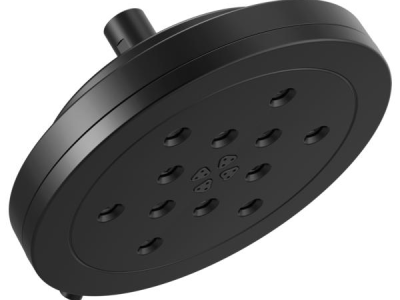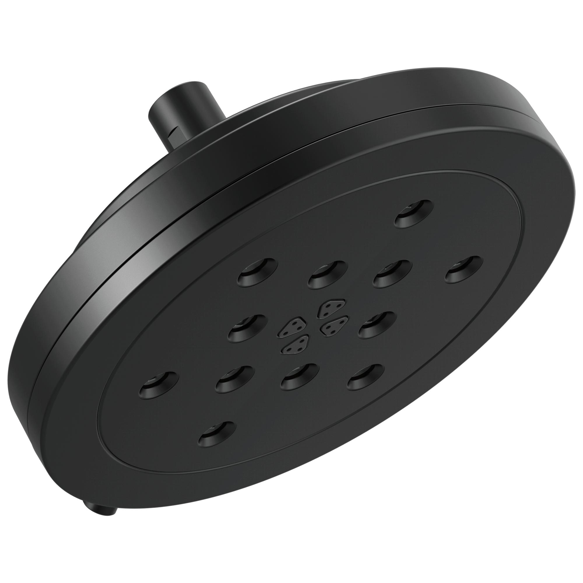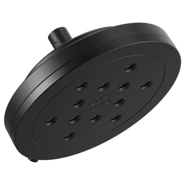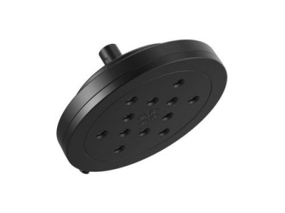 Brizo® Raincan Shower Head, Multi-Function, Atavis™ Collection, 1.75 gpm Maximum, 1/2-14 Connection, Round Shape, 4 Sprays, Spray Pattern: Full Body H2Okinetic®/H2Okinetic® Invigorating/Massaging/Pause, Wall Mounting, 80 psi Pressure, 8 in Dia x 3-15/16 in H Head, Brass, Matte Black, Import