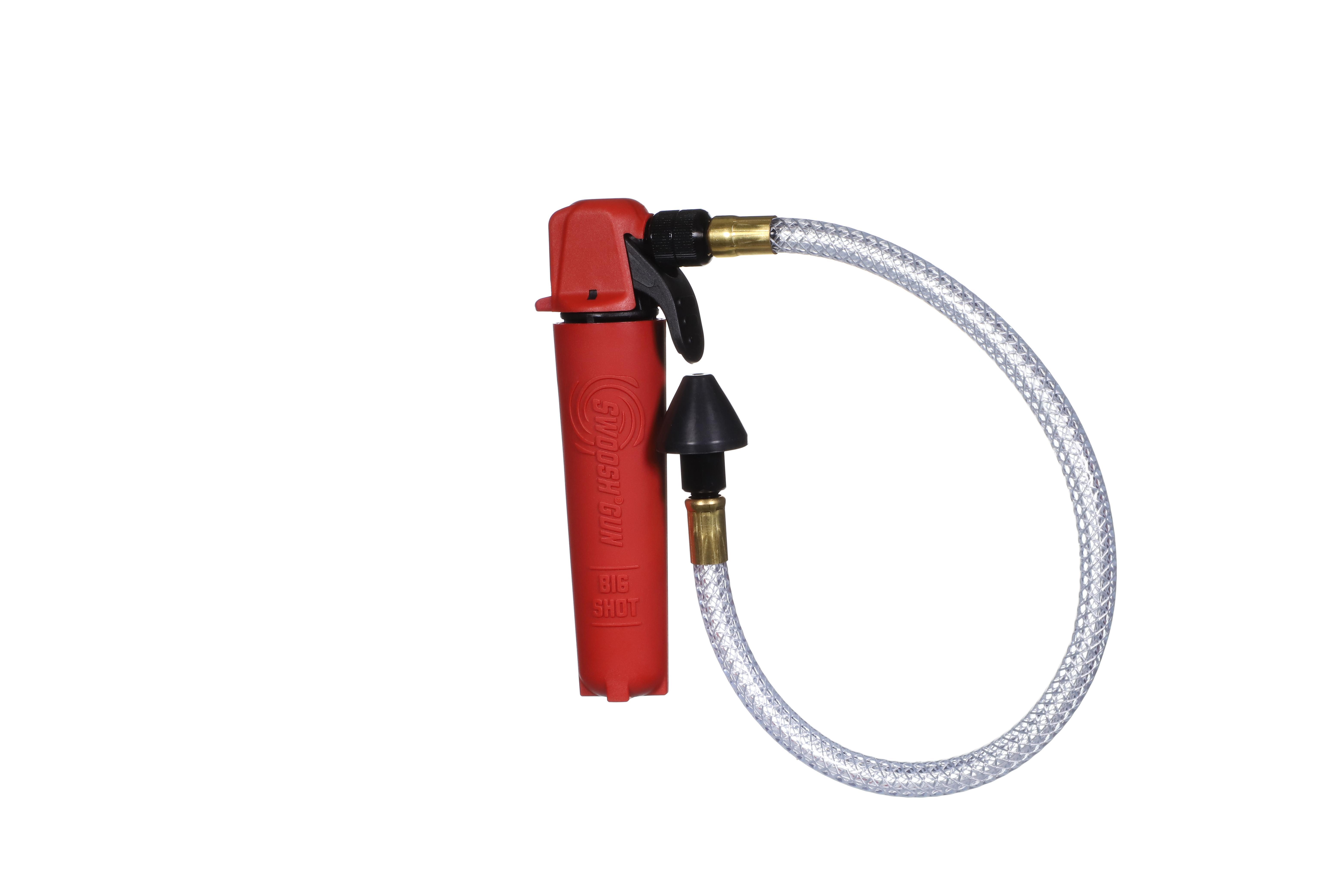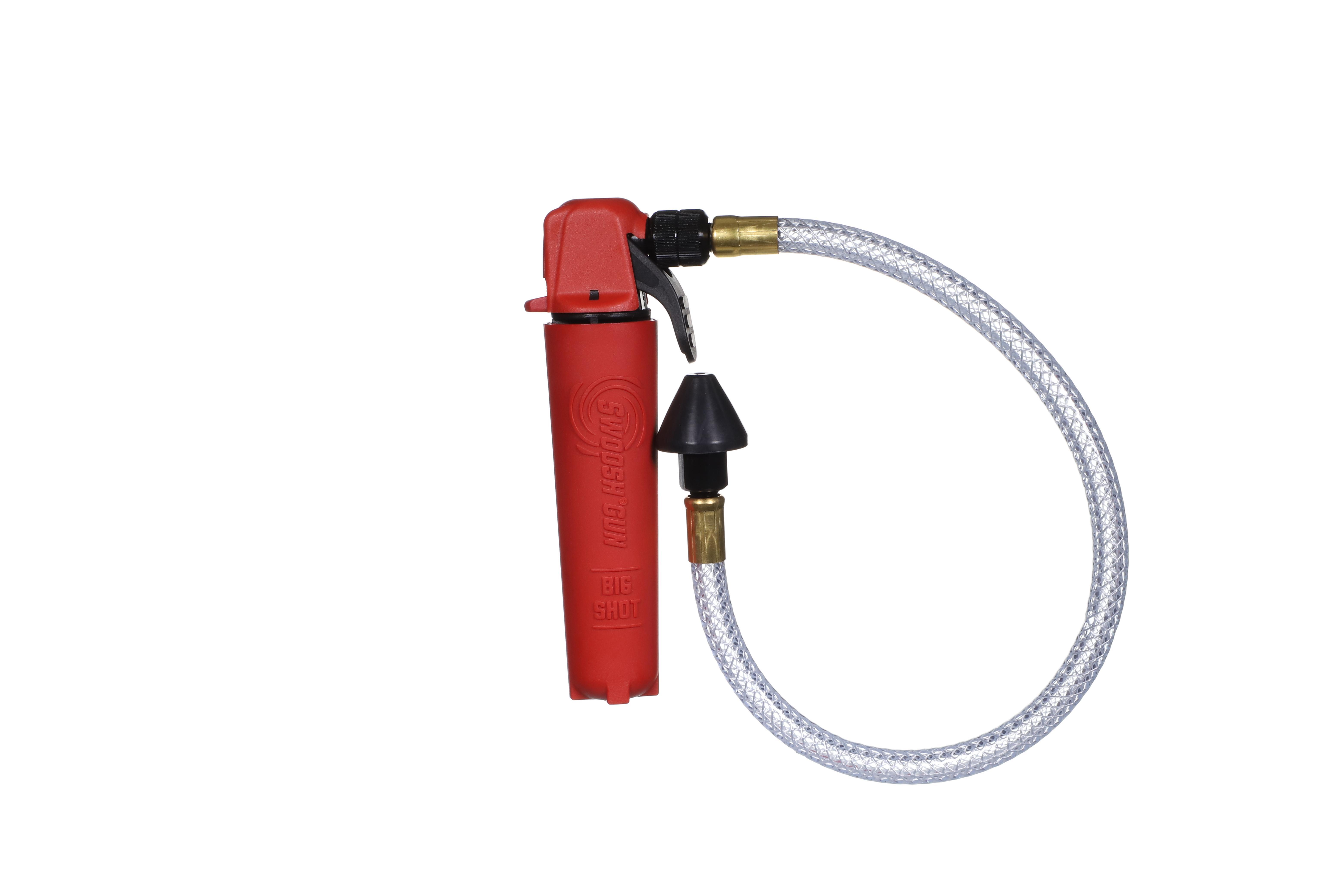 The SWOOSH® Drain Gun® Big Shot™ is designed to clear drain lines instantly. Larger 20 gram SWOOSH® CO2 cartridges deliver 800 PSI of oil free air to clear the line, with 25% more capacity. Each unit comes equipped with a tapered fitting to work on 3/8 in – 3/4 in drain openings. Flexible hose assembly maneuvers through cabinets, coils and hard to reach drains. Reduces labor costs and time on service calls.