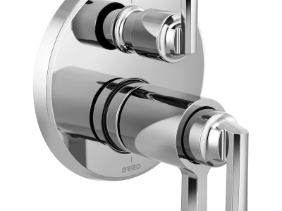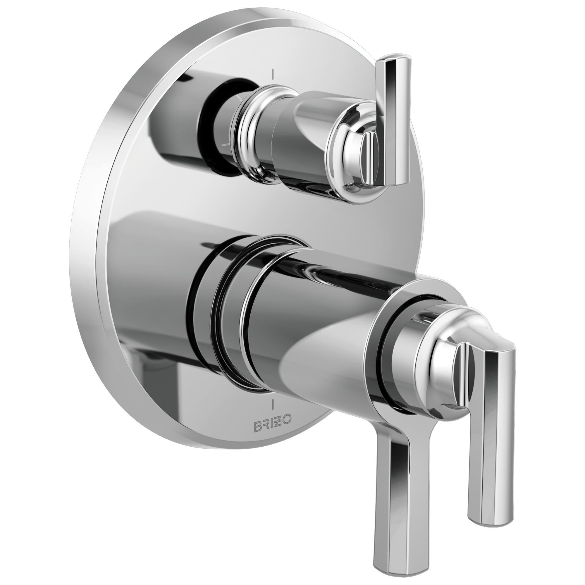 Brizo® Valve Trim, Levoir™ Collection, Valve Flow Rate 7.2 gpm, 3 Handles, Lever Handle, 6-5/8 in Dia Trim, Thermostatic Ceramic Cartridge, Hand Shower: No, Wall Mounting, For Use With: MultiChoice® Model R75000 Universal Integrated Shower Diverter Rough, Polished Chrome