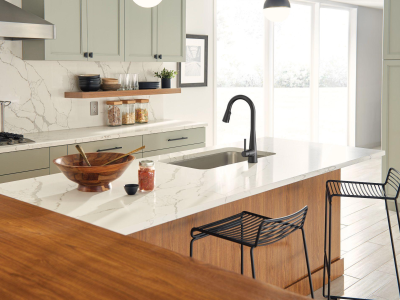 Bold. Modern. Sleek. Inspired by clean lines and a minimalist approach to style, the sleek kitchen faucet Collection proves the old adage that less really is more. The dramatic flared base is mirrored in the pulldown, self-retracting faucet head and spray wand, allowing for ease-of-use and easy clean up. Dramatic flair featuring sleek and clean lines, pushing beyond transitional into a modern style with broad appeal. Featuring a clean and cylindrical modern style with soft, flowing lines, Sleek elevates modern to a new level and defines the shape and function of things to come. Featuring single-sensor touchless activation, MotionSense Wave allows you to easily turn water on and off with the wave of a hand—no need to touch the faucet with dirty or wet hands. Installation is quick and easy with the Duralock Quick Connect system, and the faucet can be mounted on either a sink or countertop.