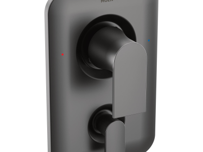 Moen®, T2470BL, Trim, Genta™ Collection, 2 Handles, Lever Handle, 6-3/8 in W x 3 in D x 9-7/8 in H Trim, 1222 Pressure Balanced, Hand Shower: No, Wall Mounting, For Use With: M-Pact® Posi-Temp® 2521/2571 Built-In 2-Function Diverter Transfer Valve and M-Pact® Posi-Temp® 2551 Built-In 3-Function Diverter Transfer Valve, Metal, Matte Black, Domestic