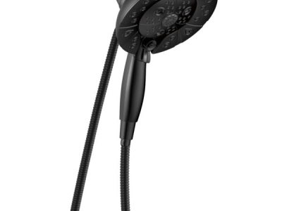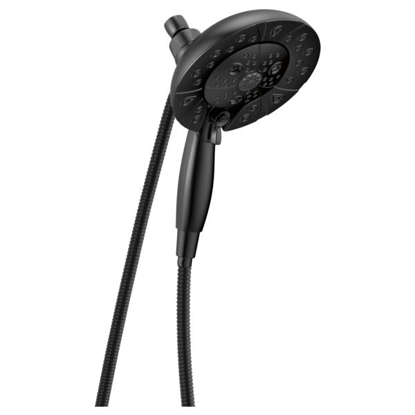 DELTA® Shower Head and Hand Shower Combo; 2-in-1; In2ition®; 6-7/8 and 3-15/16 in Shower Head Dia; 2.5 gpm; 60 to 82 in Hose Length; H2Okinetic® PowerDrench®/Full Body/Full with Massage/Massage/Pause Spray; 80 psi; Metal Hose; Matte Black; 5.5 in L x 6.88 in W x 11.57 in H; With Slide Bar: No, Import